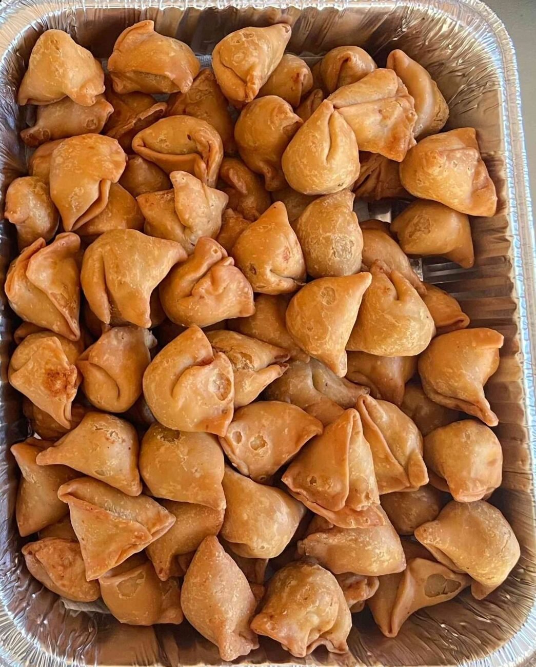 Crispy, golden-brown triangle: a beloved Indian pastry with spiced potato and pea filling (Comes 3 pc/ Person)